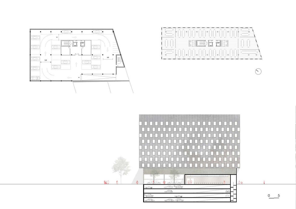 La proposta consisteix en un edifici de vuit plantes amb dues plantes de aparcament, complint així els requeriments que ens donava l’enunciat. S’intenta amb les vuit altures que l’edifici no competeixi amb els seus iguals de la Avinguda Diagonal, i alhora intentar fer front cap al carrer Numància.